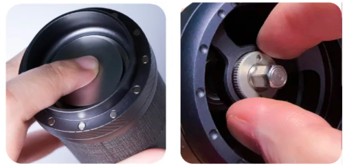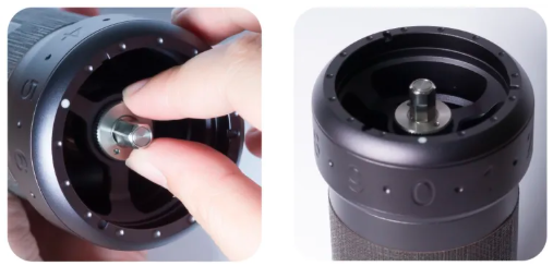 - Ruotare la ghiera di regolazione per impostare la macinatura desiderata. L' indicatore della ghiera indica l'impostazione: numeri più alti corrispondono a macinature più grossolane. Evitare di stringere eccessivamente la ghiera per evitare che il macinacaffè si incastri.
