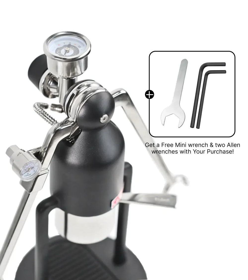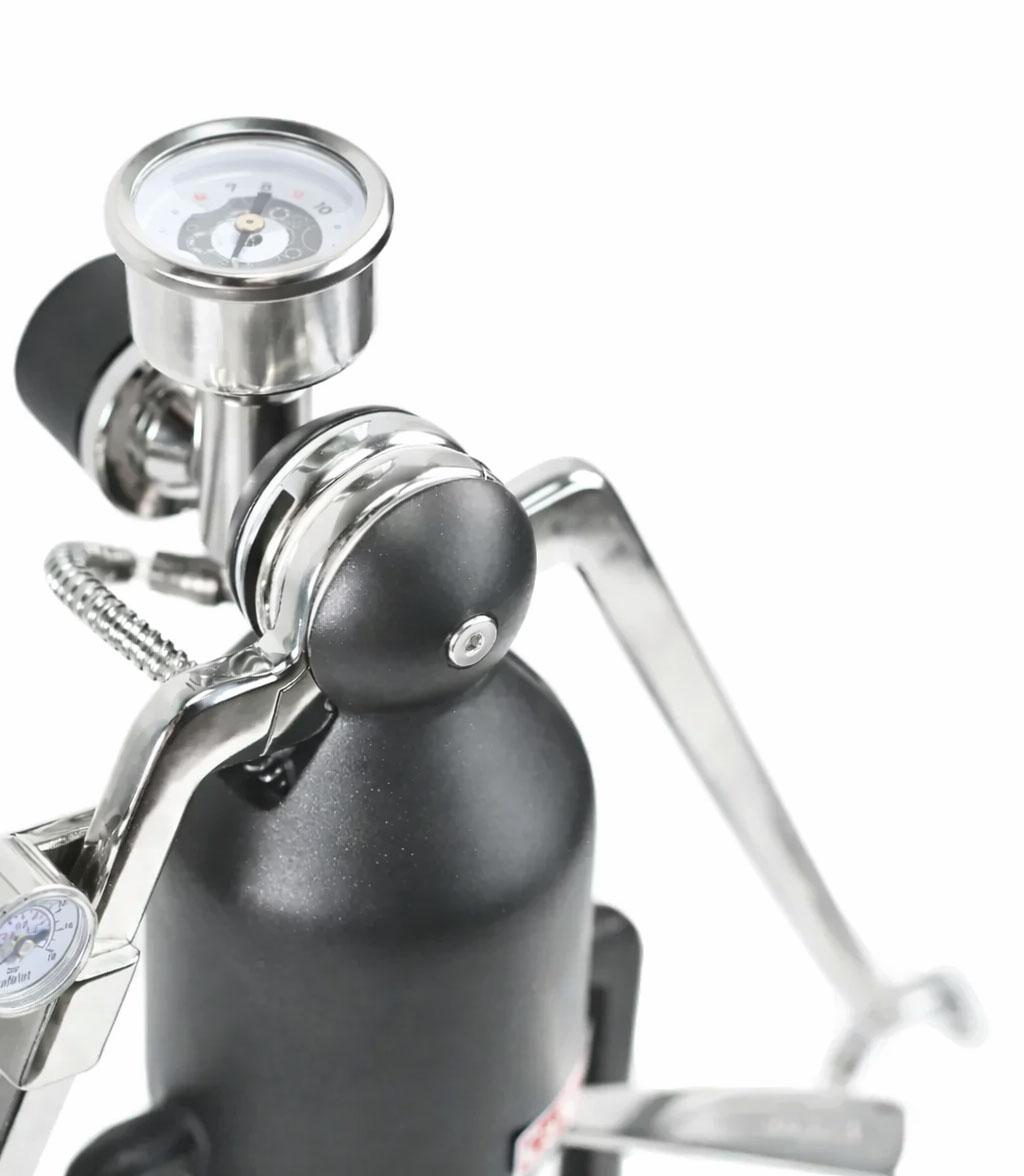 Il manometro analogico si trova sulla parte superiore della macchina per il caffè, così puoi guardare direttamente l'ago quando spingi le braccia del robot.