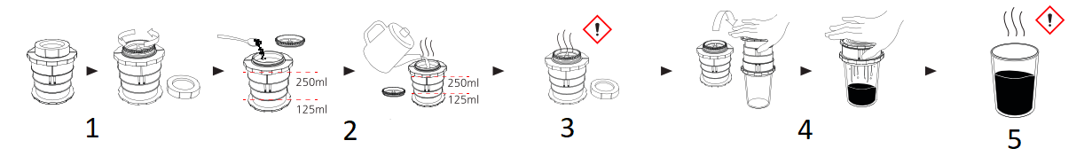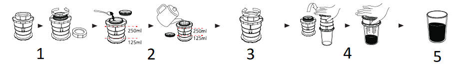 - Chiudere il microfiltro e lasciare in infusione (1-3 minuti a seconda del gusto personale).