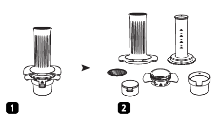 - Avvitare completamente il cestello del filtro nella camera per evitare perdite. Assemblare la tazza con il cestello del filtro.