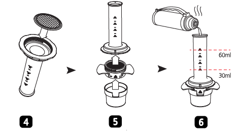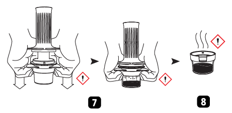 - Versare la quantità desiderata di acqua calda nella camera, facendo riferimento alle scale incise.