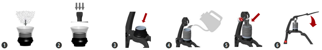 Seguire i passaggi seguenti. La pulizia della Flair 2GO deve essere effettuata solo con acqua. Non è necessario alcun sapone, poiché potrebbe alterare il sapore dell'espresso. Non mettere mai i componenti della GO in lavastoviglie.