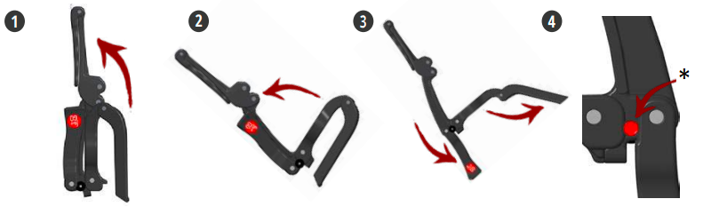 4. Sblocca premendo il pulsante rosso - Sblocca il blocco premendo il pulsante rosso, quindi esegui la procedura inversa per ripiegare il tuo Flair 2GO.