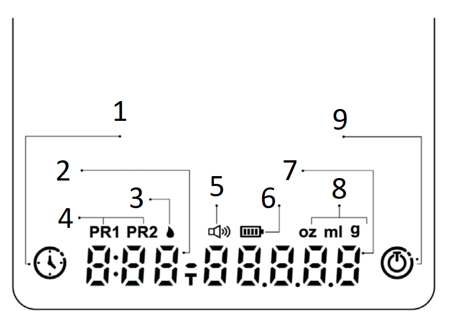 - Batteria scarica: lampeggia quando la batteria è scarica. Continua a lampeggiare finché non viene visualizzato LO, dopodiché la bilancia si spegne automaticamente.