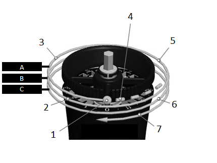 corpo in alluminio fresato, (C) contenitore di raccolta rimovibile