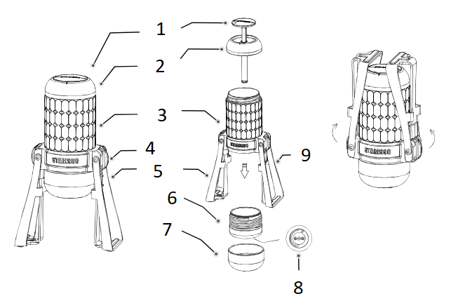 - Dopo il rimontaggio, asciugare l'esterno del Mirage e ripiegare le gambe.