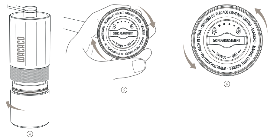 - Ruotare la manopola di regolazione in senso orario per una macinatura più fine e in senso antiorario per una macinatura più grossolana.