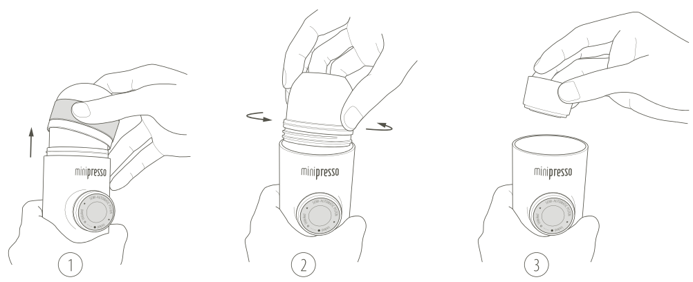 - Non consumare mai il liquido direttamente dal MiniPresso poiché il contenuto potrebbe essere caldo.