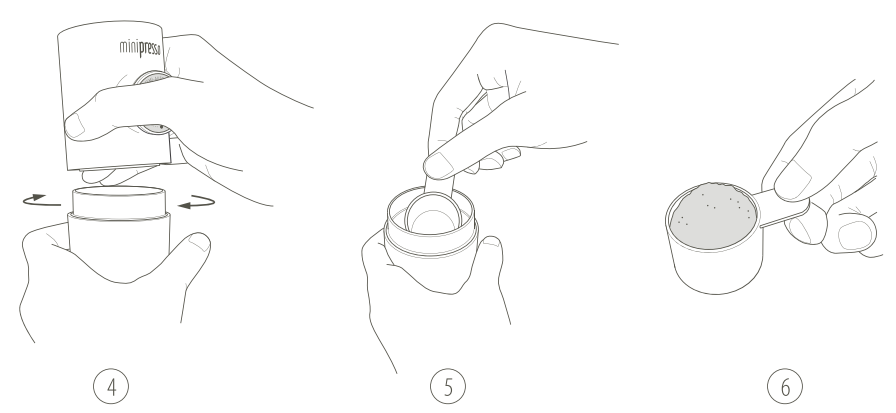 14. Portare il MiniPresso sopra la tazza e iniziare a pompare. Le prime 6 pompate riempiranno il filtro d'acqua. Continuare a pompare finché non esce più caffè.
